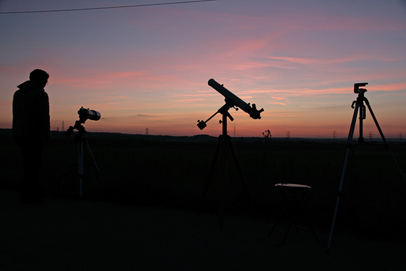 Bedingungen: Einige, wenig störende Cirren am Himmel - ansonsten gute Durchsicht, aber schlechtes Seeing. Ziemlich frisch vor Sonnenaufgang mit 6°C und kaltem Wind.