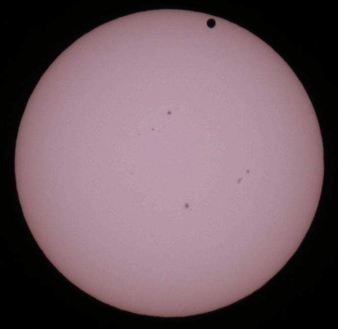 Anhand meiner Fotos konnte ich die Kontaktzeiten zu 6:37 Uhr (3. Kontakt) und 6:55 Uhr MESZ (4.Kontakt) bestimmen, wobei ich leider nur minutengenau ablesen konnte. Interessant war auch, dass ich die Venus im H-Alpha-Licht noch etwas länger erkennen konnte, als im Weißlicht. Insgesamt kann ich mich sehr glücklich schätzen, auch den zweiten, für mich sichtbaren Venustransit bei gutem Wetter beobachtet zu haben. Auch wenn es wohl gleichzeitig das letzte Mal war, so gibt es doch auch in den nächsten Jahren immer wieder Highlights wie etwa den Merkurtransit 2016.